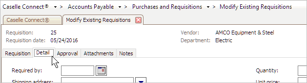 9. When you're done entering the requisition items, click Save (CTRL+S).