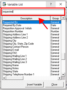 4. Click and drag Requested By from the Variable List to the purchase order form definition.