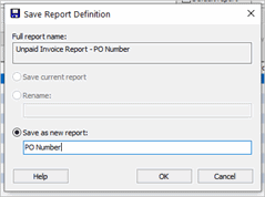 If you want to use the report with the PO number later, save your changes as a new report definition.