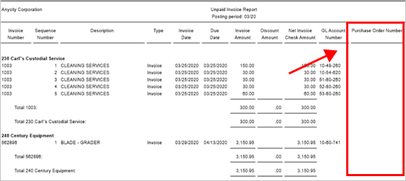 Follow these instructions to add the purchase order number to the Unpaid Invoice Report.