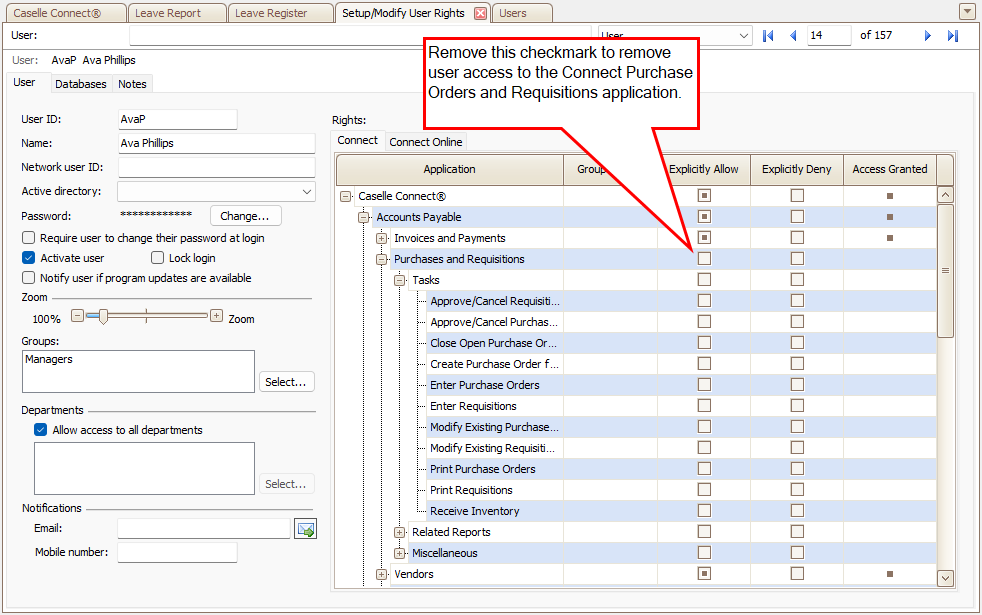 User rights control user access to Connect and Connect Online. You can make changes to the user rights to control which applications, views, and reports a user can access in Connect and Connect Online.
