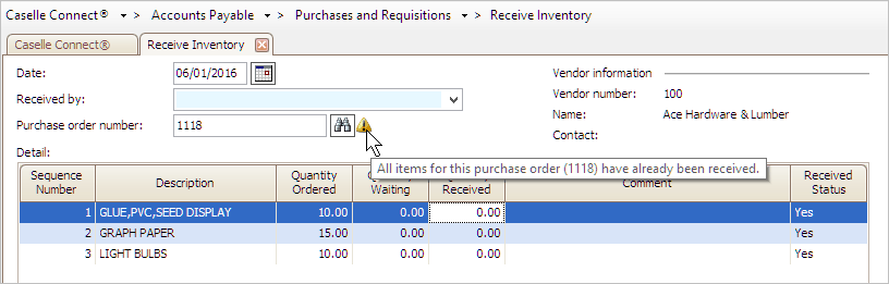 The warning icon will not prevent you from entering the quantity received