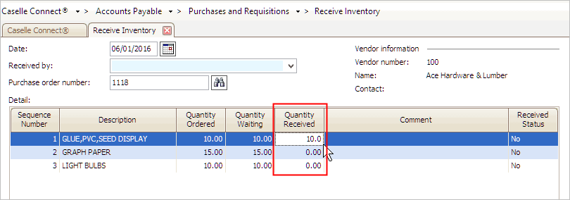 4. Enter the Quantity Received.