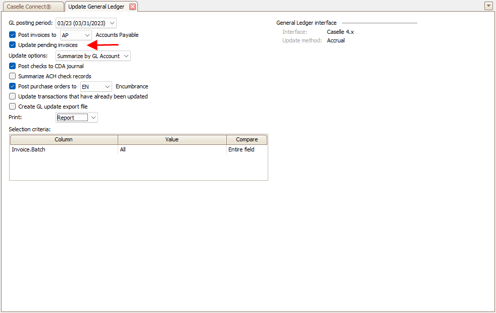 How do I update pending invoices to General Ledger? (2024.05)