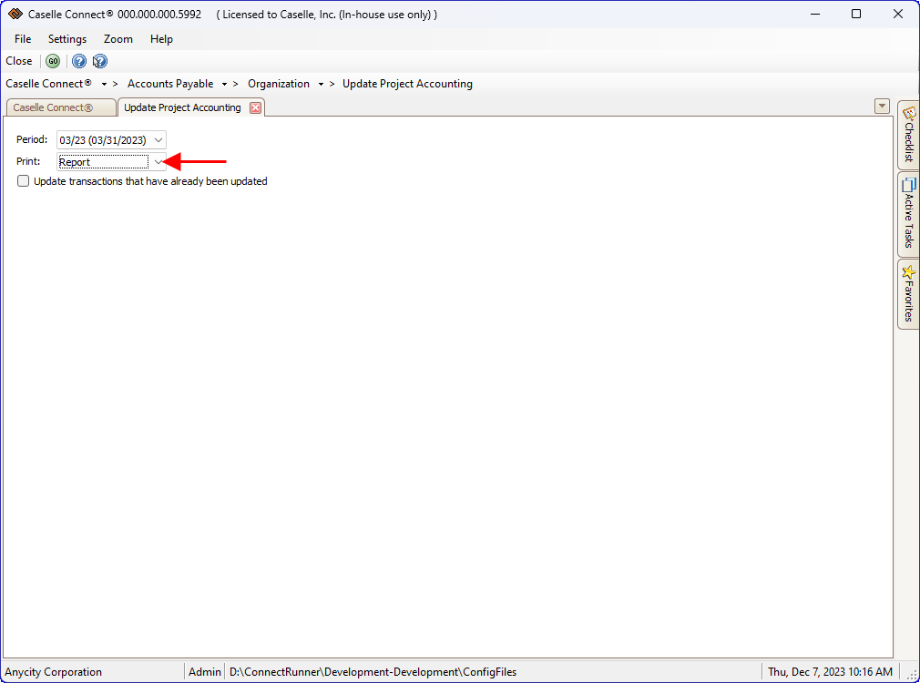 1. Open Connect Accounts Payable > Organization > Update Project Accounting.