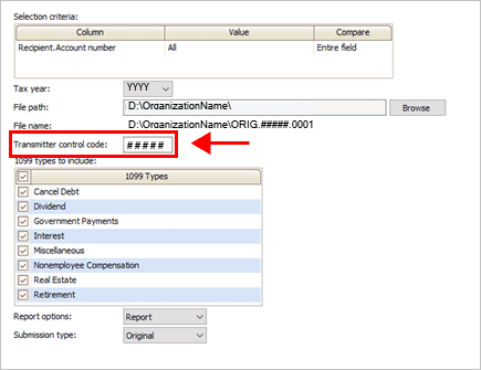 You’ll want to make sure that all of the 1099 types you want to include in the electronic file are included in this field.
