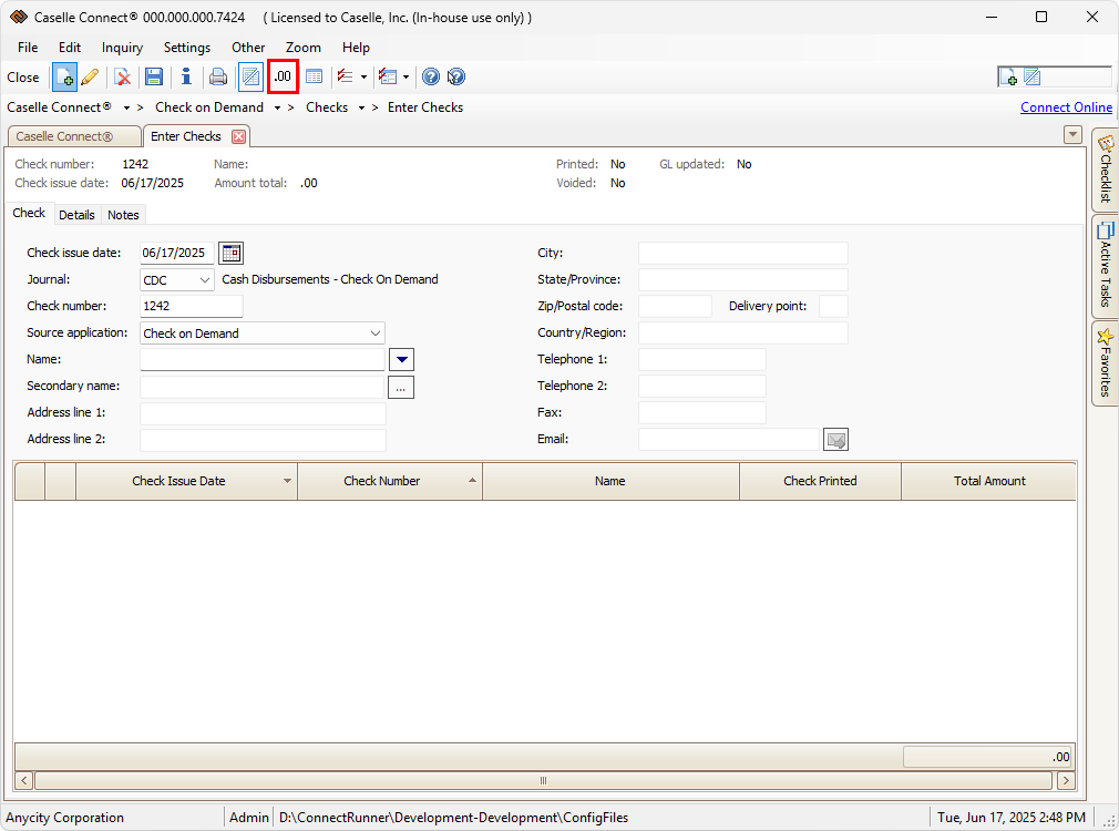 Use Enter Checks to create a check record to save payee and check detail record, then print a physical check. You can use Enter Checks to set up a new payee, retrieve payee information from the Payee table in Check on Demand, or retrieve payee ...