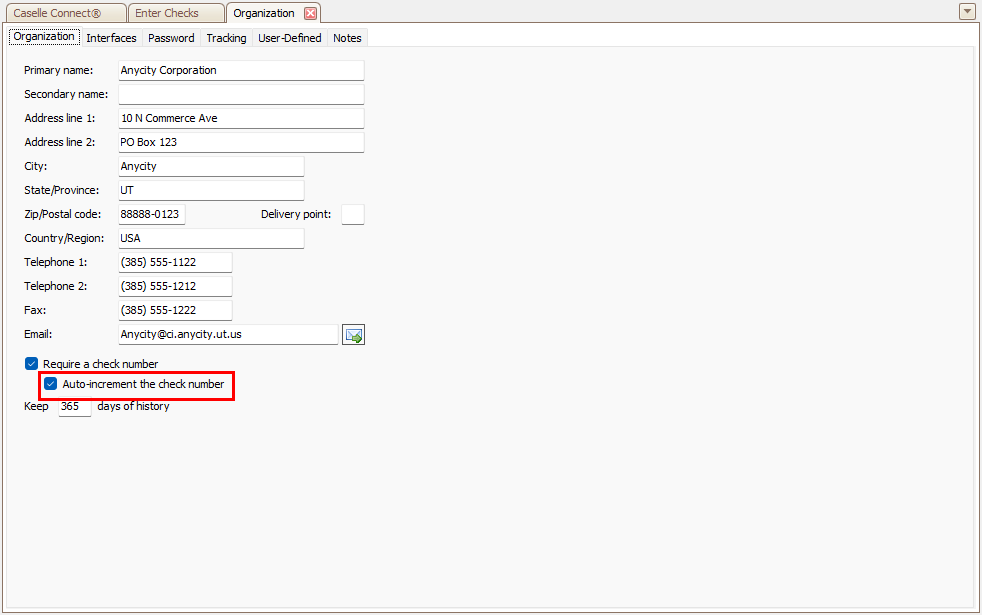 2. Click to select Auto-increment the check number.