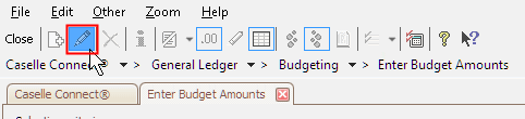 1. From the Enter Budget Amounts screen (Connect General Ledger > Budgeting > Enter Budget Amounts), click Edit (CTRL+E).