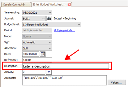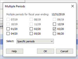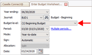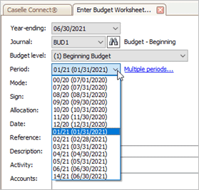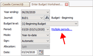 Period: Click the Multiple Periods link and then select the periods to show in the budget entry worksheet.