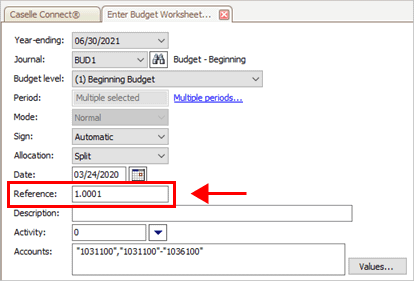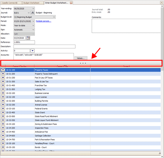 1. Open Connect General Ledger > Budgeting > Enter Budget Worksheet Amounts.