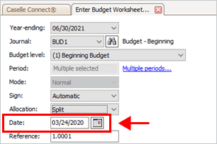 Use Split to enter a budget amount that Connect will divide between the selected periods and round to the nearest whole dollar. If the budget amount does not divide evenly, the last period will receive the remaining amount. To learn more, click here.