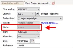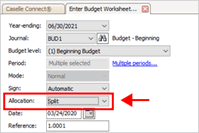 Why can't I select an allocation? The Allocation box is only available when the budget worksheet is set up to enter multiple periods.