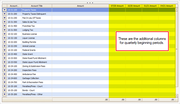 Worksheet is set up for quarterly beginning periods