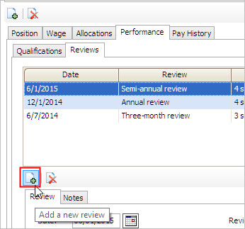 A performance review saves the review date, review type, rating, reviewer's name, and next review date. If the performance review justifies a wage adjustment, there's a checkbox to record it however, it will not adjust the wage for you. You will need to update wage adjustment in the employee's record in Payroll.