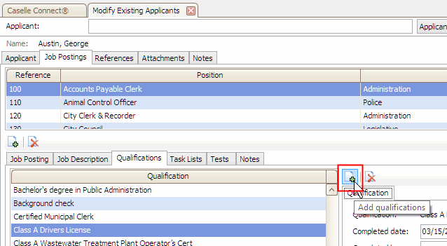 5. Click to select the Qualifications tab.