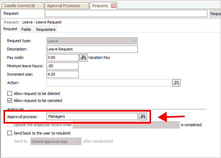 2. Use the Approval Process box to enter the approval process that you will use to approve the request.