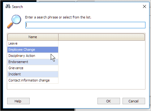 4. Select Employee Change and then click OK.