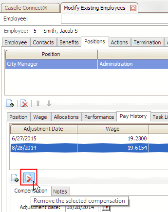 6. Use the pane on the Pay History subtab to select a wage adjustment.