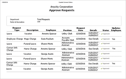 1. On the Approval Requests page, set up the list to show the approval requests that you want to print on the report.