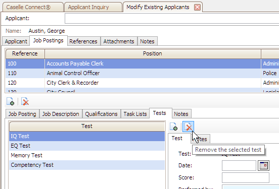 7. Use the toolbar on the Tests tab to select Remove the Selected test.