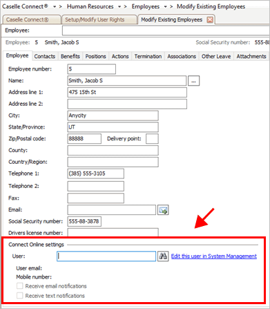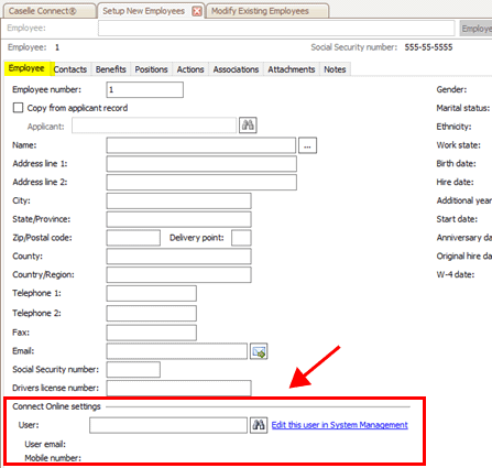 2. Find the section titled Connect Online Settings on the Employee tab.