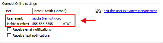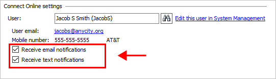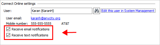 - To turn on text notifications, select the checkbox titled Receive Text Notifications.
