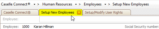 1. Open Connect Human Resources > Employees > Setup New Employees.
