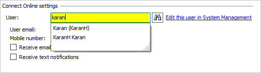 - Set up the employee's email and mobile number in System Management (User Rights). See the help topic titled How do I update a user's notification email or mobile number?