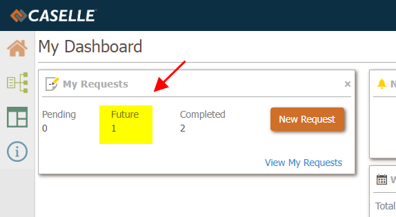The option to view leave requests has been added to the 2025.02 release. The My Requests widget will show the number of future requests that you have submitted.