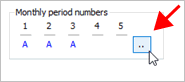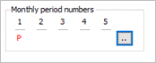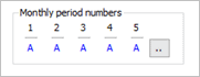 Use the Monthly Period Number to select the period to accrue the pay code. Each number corresponds to a period. The letter displayed below the period number is the portion of the pay period that will be included.