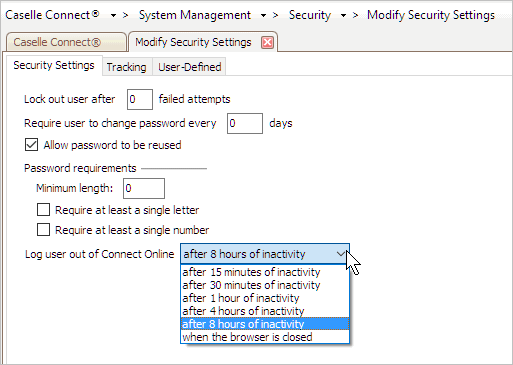 3. Use the Log User Out of Connect Online After menu to select the inactive period.