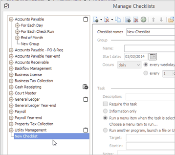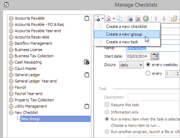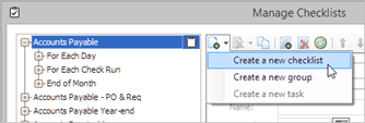 For example, it is not uncommon for a checklist to have daily tasks, monthly tasks, and end of month tasks. You can create a separate checklist or add a group. A group is a checklist that is attached to a larger checklist.