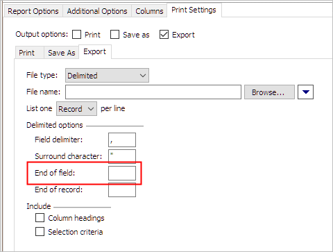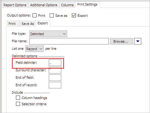 Include column headings and Include selection criteria checkboxes