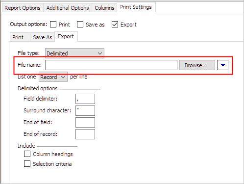4. Fill in the fields in the Export Options section.