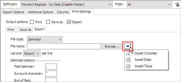 Example: c:\ExportFiles\Deposit_Register