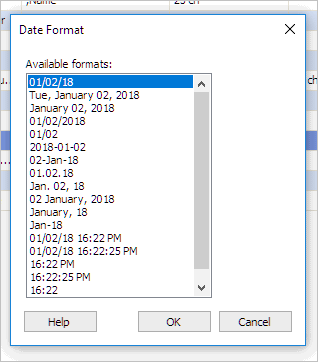 8. Click to select a date format from the list.