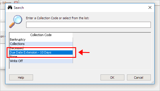 2. Look up the collection code with a due date extension.
