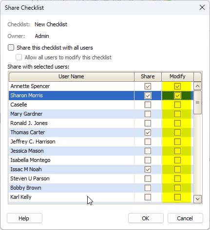 choose which users can make changes to the checklist.