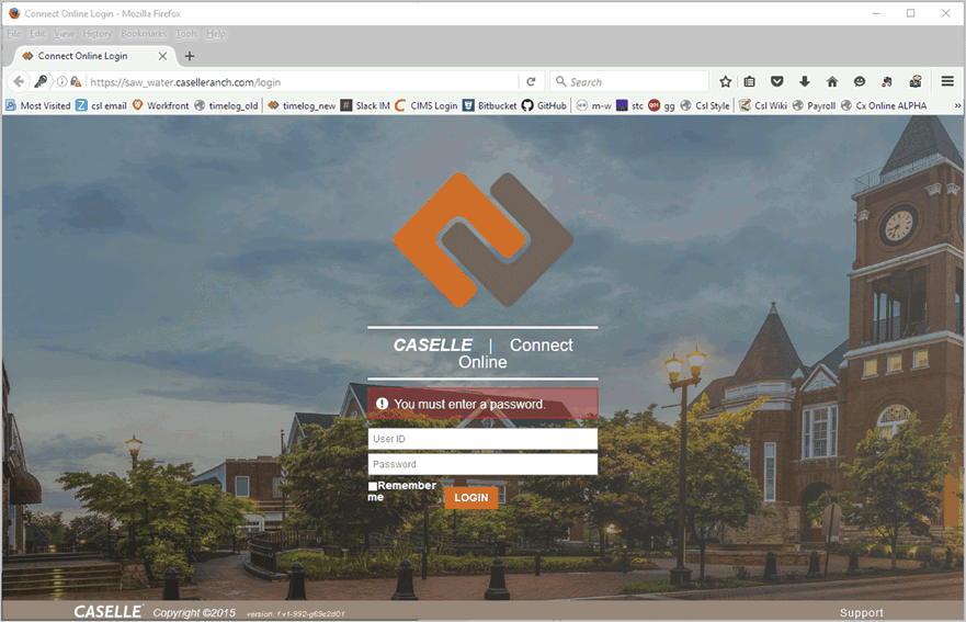 After Connect Online Web Service is installed, launch the web address that you received in the email from Caselle.