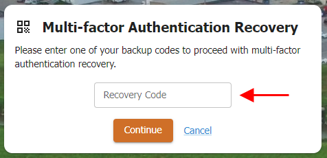 Enter a backup code (recovery code), and then click Continue.