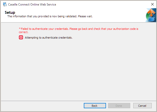 The authentication code is a single-use only code. If you need to reinstall Connect Online Web Service, you'll need to request a new authorization code. Contact customer service at (800) 243-8275 for assistance.