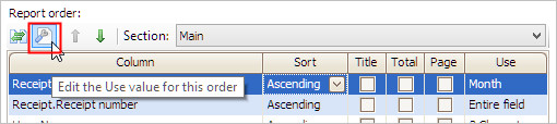 When you use the entire field, Connect will use the contents of the entire field to determine when it's time to begin a new section. For example, you can use the month to separate receipts in the report.
