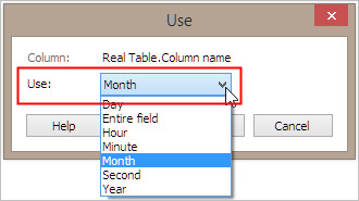 When the column stores a date, you can organize the data by day, hour, minute, month, second, and year.