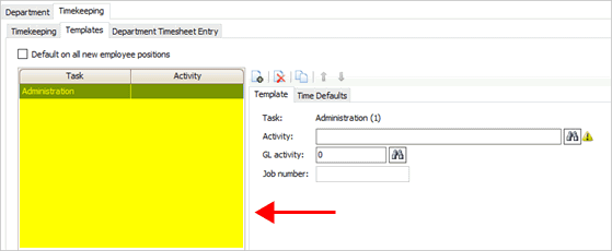 A department template stores the default tasks and activities for the employees in a specific department. When an employee in the department opens their timesheet, the department's default tasks and activities will be displayed in the employee's timesheet.