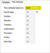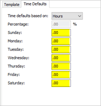 Use the Time Defaults Based On list to choose Hours, Percentage, or Shift. If you choose Hours, you can enter default time entries for each day.