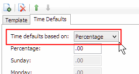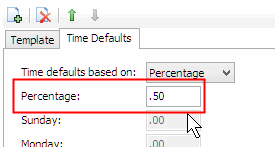 Use this option to attribute part of the time an employee works to the employee's position. Use the Percentage field to enter the portion of the employee's time to allocate to the employee's position. For example, Jane works the same position for two separate departments. When the payroll clerk sets up Jane's default timesheet, he sets up the timesheet to calculate based on a percentage.