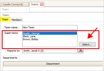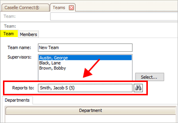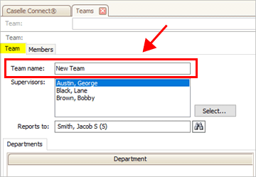 Use a team when people from different departments work together and you want to track the work completed by the team. You can assign a supervisor to the team and assign a person who the supervisor will report to.