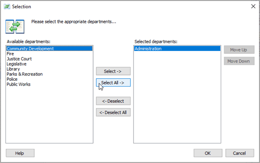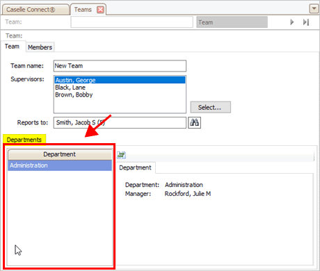 Assign the team to a department. You can assign more than one department to a team. The department must be set up in the Departments table in Connect Payroll.