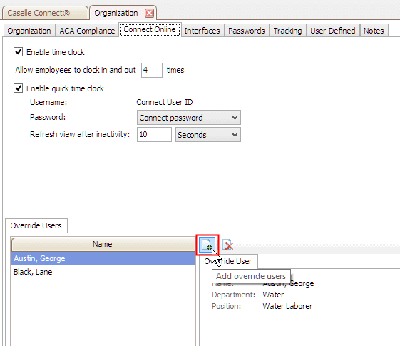 Set up one or more users that can run Timekeeping when the dedicated user is away. The override user can approve timesheets, run reports, update time entries, and so on.